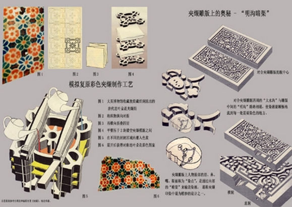 夾纈(xié),現代也稱夾染,是一種傳統雕版鏤空印花防染工藝,也是中國最古老的印染工藝之一。夾纈,是使用夾版入染的一種工藝方法。通俗地講,夾纈就是兩塊刻有花紋且互相吻合的花板,夾住織物進行染色。染液無法滲透花紋突出部分,卻能以凹進部分染色。